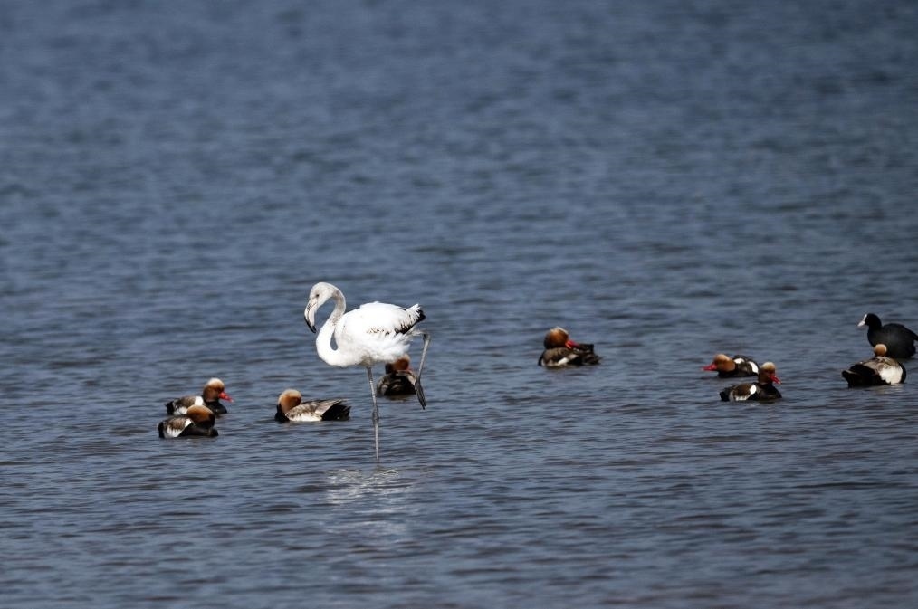 大紅鸛又稱大火烈鳥,主要生活在鹽水、淡水棲息地,喜歡結(jié)群生活,主要分布于熱帶、亞熱帶地區(qū),已被列入國家保護(hù)的有益的或者有重要經(jīng)濟(jì)、科學(xué)研究價值的陸生野生動物名錄。陳峰說:“大紅鸛在烏梁素海屬于‘迷鳥’,實屬罕見。我們已安排專人在湖區(qū)周邊實行重點(diǎn)巡查,防止人類活動干擾大紅鸛的棲息,給它營造出適宜、安全的棲息環(huán)境?!?/p>