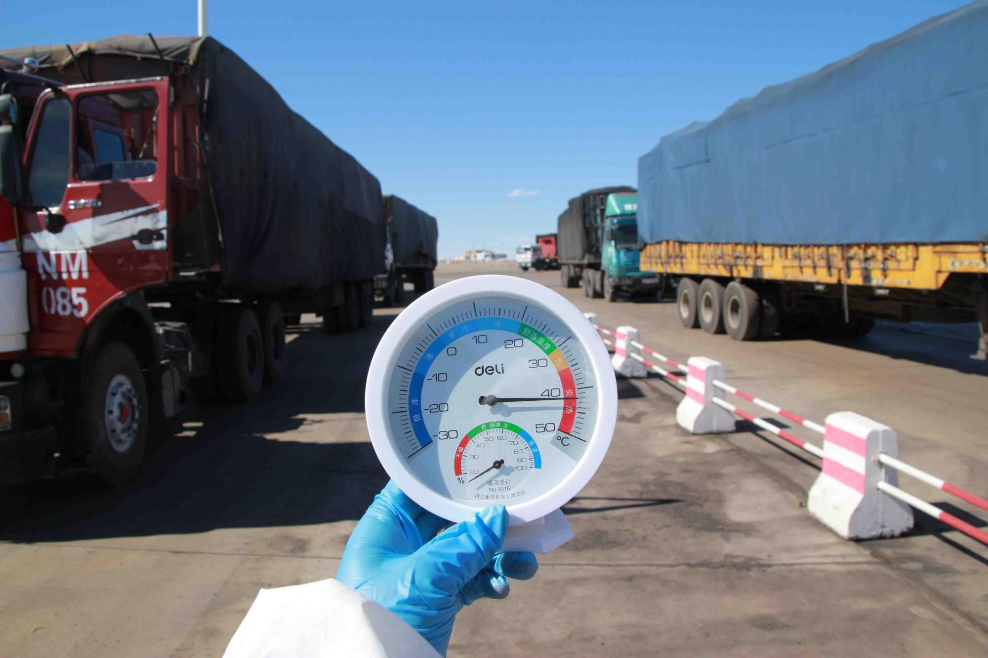 6月11日,內(nèi)蒙古自治區(qū)阿拉善盟額濟納旗策口岸地氣溫持續(xù)升高,策克口岸距離額濟納旗近70余公里,地處戈壁深處,全年干旱少雨干燥的氣候、持續(xù)增長的氣溫,為抗擊疫情、出入境查驗等工作都帶來了不小的影響。