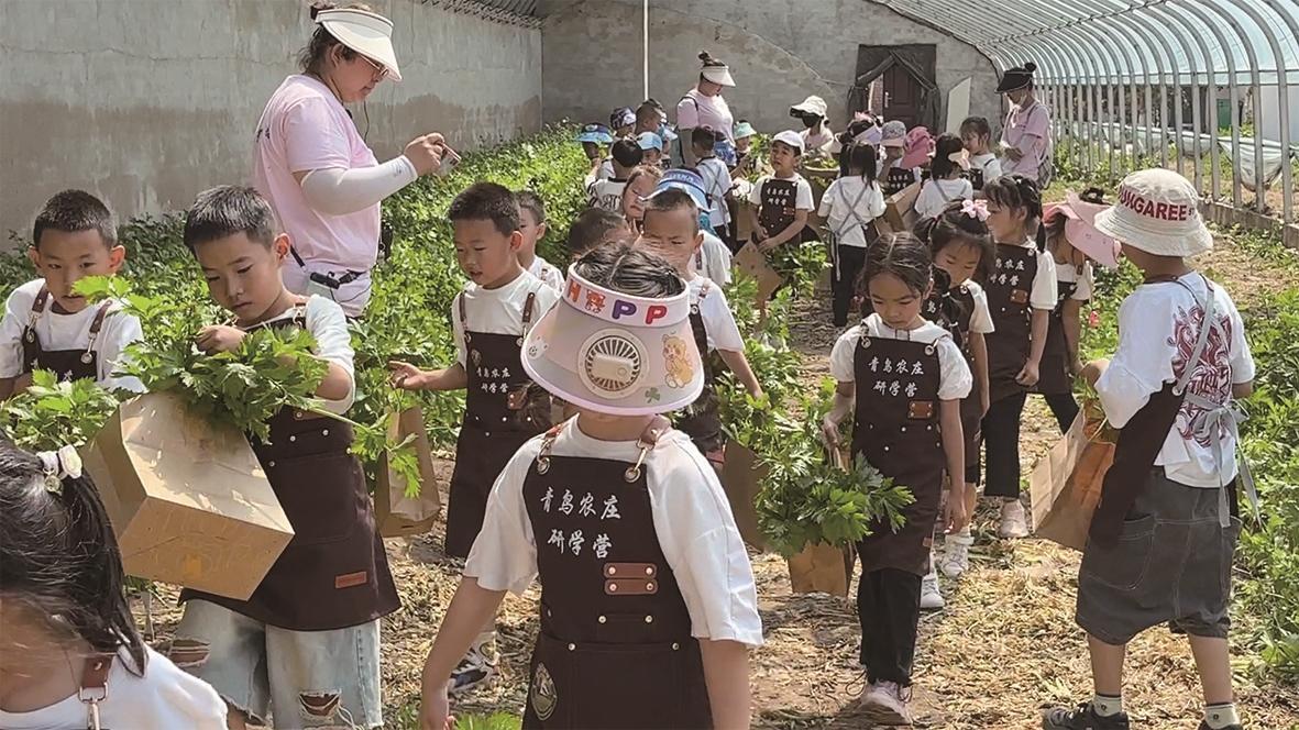 孩子們?cè)谇帏B養(yǎng)生莊園研學(xué)。