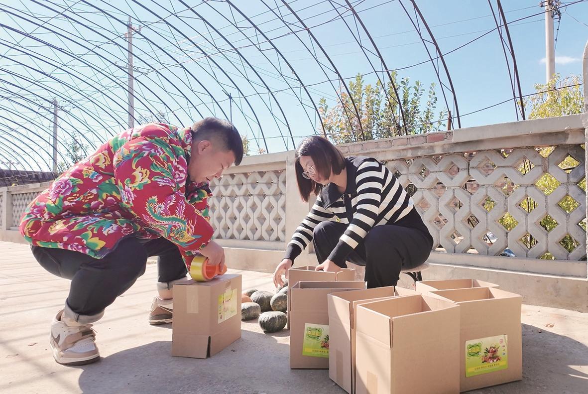王亞春夫婦將本地特色農(nóng)產(chǎn)品打包發(fā)貨。