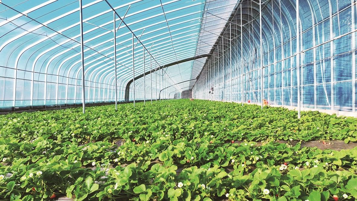 智能溫室大棚內(nèi),自動(dòng)噴淋、自動(dòng)霧化及增溫設(shè)備一應(yīng)俱全。