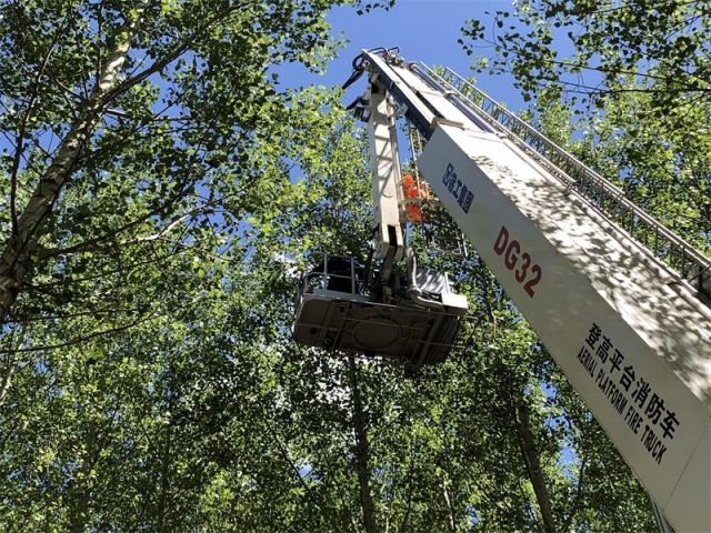 原來,6月4日11時(shí)30分許,曹先生來到赤峰市寧城縣汐子鎮(zhèn)北山咀村準(zhǔn)備進(jìn)行水域測繪,航拍的過程中,價(jià)值30多萬元的無人機(jī)突然消失了,曹先生四處尋找,才發(fā)現(xiàn)無人機(jī)被掛到了一棵很高的樹枝上,反復(fù)操作多次,無人機(jī)始終沒有動(dòng)靜,疑似被卡住了,一籌莫展的他撥打了報(bào)警電話。赤峰市消防救援支隊(duì)寧城縣哈河大街消防救援站接到報(bào)警后,立即出動(dòng)1輛32米登高平臺消防車及4名消防員趕赴現(xiàn)場進(jìn)行救助。