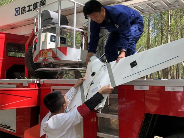 消防員把無人機(jī)交給曹先生