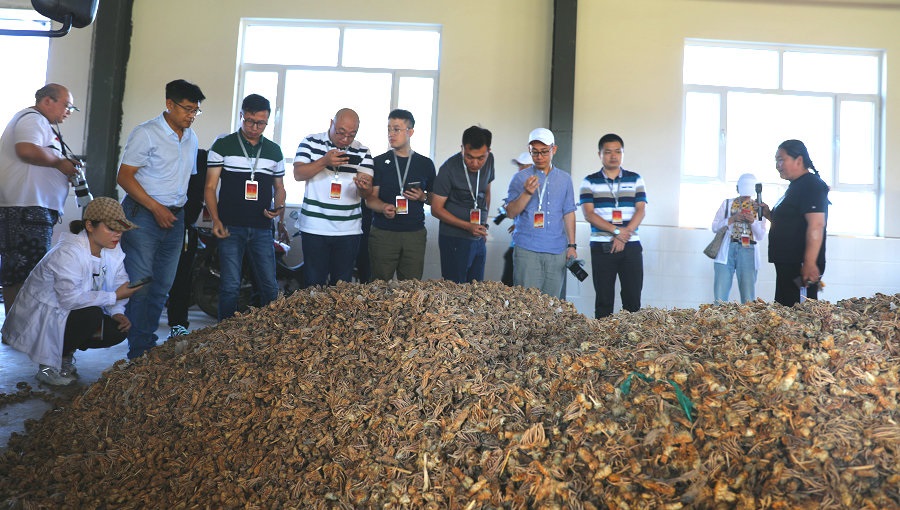 “萌嬸”趙會杰介紹小廟子村藥材種植和加工情況