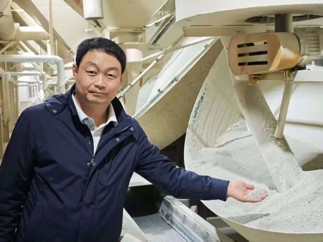 張文瀚向記者介紹膨潤土貓砂生產(chǎn)流程