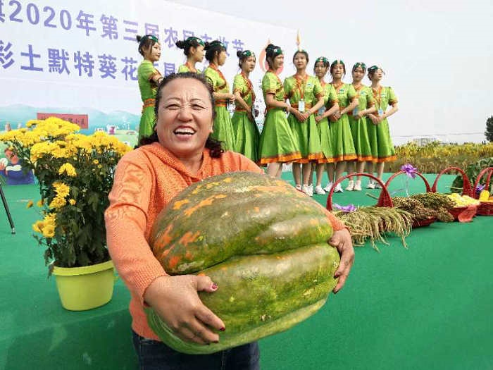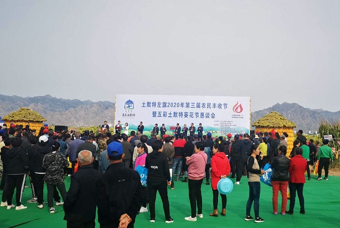 9月22日,內(nèi)蒙古土默特左旗第三屆農(nóng)民豐收節(jié)暨“五彩土默特”葵花節(jié)懇談會(huì)在敕勒川鎮(zhèn)只幾梁村舉行。