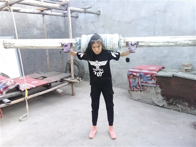 用工地上撿來的木頭樁和繩子制作的簡易牽引機,加了墊子的木凳做跳躍訓(xùn)練,用木頭和海綿做的啞鈴……走進(jìn)呼和浩特市土默特左旗察素齊鎮(zhèn)鄭國花的家里,由父親耗時半個月打造的簡易健身房就是鄭國花每天訓(xùn)練體能的地方。鄭國花在土默特左旗第一中學(xué)高一就讀,每天凌晨4點多,父女二人就準(zhǔn)時出現(xiàn)在察素齊鎮(zhèn)街頭的柏油路和體育場里。從小學(xué)六年級到高一,訓(xùn)練從不懈怠,一堅持就是5年?!捌鋵嵶畛踝尯⒆泳毩?xí)中長跑,主要是為了鍛煉孩子的身體。女兒4個月大的時候,她媽媽就離開了,我一直又當(dāng)?shù)之?dāng)媽把她拉扯大,但這娃娃身體一直不好,不怎么吃飯,身體十分瘦弱,直到上小學(xué)六年級的時候,連一碗飯都吃不進(jìn)去。我一看再這么下去身體指定是要垮掉的,就想著讓她練習(xí)跑步,能多吃點飯。因為我是軍人出身,以前也是運動員,和女兒商量后,她也同意了,我們就開始跑步。第一個月,她還追不上我,但飯量確實見長,到了第二個月,我就追不上她了,我開始騎著自行車陪她跑,再后來自行車追不上了,我就騎了一輛三輪車,三輪車也不行了,干脆買了一輛摩托車,這么多年從沒間斷過。”7月19日,鄭龍在接受記者采訪時表示,對于女兒,她最大的希望是女兒健健康康的,以后能進(jìn)入北京體育大學(xué),將來能進(jìn)入國家隊,為國爭光。