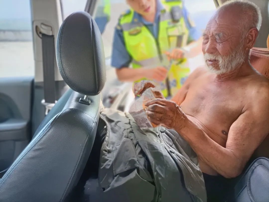 李超和張鵬飛立即靠邊停車(chē),上前把老人領(lǐng)到應(yīng)急停車(chē)區(qū),老人滿(mǎn)頭白發(fā),手里拿著一件棉襖。李超詢(xún)問(wèn)老人得知,老人叫喬林,今年96歲,家住山西右玉縣。3天前從家出發(fā),準(zhǔn)備到呼和浩特兒子家過(guò)中秋。老人身無(wú)分文,炎炎夏日還穿著棉襖??紤]到老人又渴又餓,張鵬飛和同事在就近的服務(wù)區(qū)給老人買(mǎi)了面包、香腸和水,又從服務(wù)區(qū)給老人找了一套夏季的保潔工作服。隨后,李超、張鵬飛將老人帶回了呼和浩特市區(qū)。