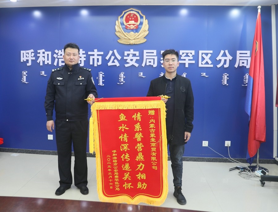 賽罕區(qū)副區(qū)長、公安分局局長趙新龍,政委郭震乾等領(lǐng)導(dǎo)熱情接待了商會和愛心企業(yè)負(fù)責(zé)人,并向商會及愛心企業(yè)贈送錦旗以示感謝。