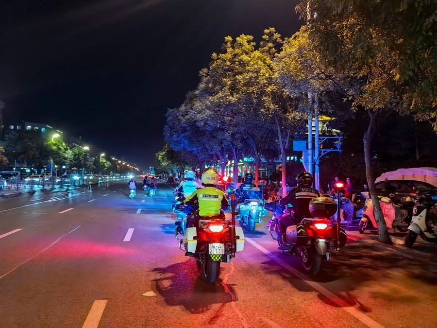 中秋、國(guó)慶兩節(jié)期間,呼和浩特市公安局反恐怖和特巡警支隊(duì)?wèi)?zhàn)鷹突擊隊(duì)與交警支隊(duì)停放管理大隊(duì)鐵騎中隊(duì),聯(lián)合開展巡邏防控工作,并組成了一支騎警處突機(jī)動(dòng)隊(duì),成了呼和浩特大街小巷一道亮麗的風(fēng)景線。圖為中秋節(jié)之夜,這支機(jī)動(dòng)隊(duì)開展聯(lián)合巡邏,守護(hù)青城百姓平安過(guò)節(jié)。 王鑫 攝影報(bào)道