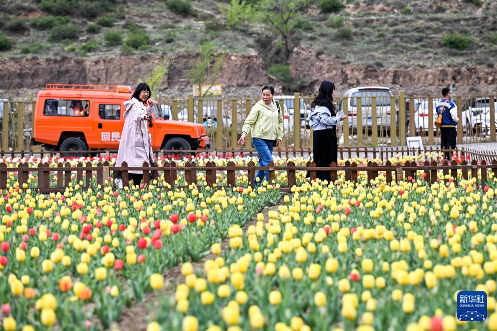 5月4日,游客在位于回民區(qū)東烏素圖村的烏素圖杏花谷景區(qū)游玩。