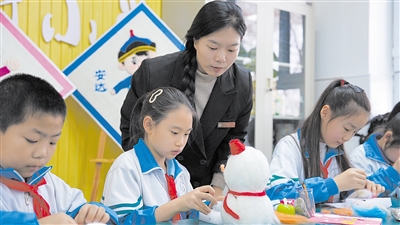 “全國大眾冰雪季給我們帶來了一個絕佳的主題切入點,讓傳統(tǒng)的羊毛氈工藝與冰雪運動相互交融碰撞,孩子們在戳刺羊毛的過程中,對冰雪文化有了更深層次的理解,也對非遺技藝充滿敬意。”健康街小學(xué)美術(shù)教師山丹邊說邊悉心指導(dǎo)學(xué)生把握形狀、色彩與紋理,幫助他們將創(chuàng)意更好地在羊毛氈作品中呈現(xiàn)?!拔以谥谱鬟@個滑雪小人的時候,就一直在想自己滑雪時的快樂,每戳一針都很用心,希望能把這份快樂表現(xiàn)在作品里?!彼哪甓鄬W(xué)生宋子祺說。