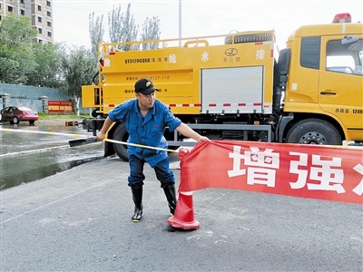 在這之前,通遼市排水管理處已啟動(dòng)應(yīng)急預(yù)案,搶險(xiǎn)人員及應(yīng)急搶險(xiǎn)車輛陸續(xù)就位。負(fù)責(zé)明仁立交橋排水搶險(xiǎn)的第2小組的4名成員兵分兩路,需要?jiǎng)裢藮|、西兩側(cè)準(zhǔn)備過橋的汽車司機(jī)和行人,以及排布車輛、施拉警界線……橋西邊,污水管道維護(hù)隊(duì)車隊(duì)隊(duì)長(zhǎng)張?jiān)僦沁吤χ掷锏幕顑?,邊通過對(duì)講機(jī)呼叫副隊(duì)長(zhǎng)盛博,催促他趕緊向過往的車輛及行人喊話,提醒大家橋下水深不能通行。此時(shí),盛博已駕車由西向東行至立交橋南側(cè)的輔路上,雨水遮住了視線,雨刮器速度越來(lái)越快,他邊回應(yīng)張?jiān)僦?,邊放慢車速向人們喊話?/p>
