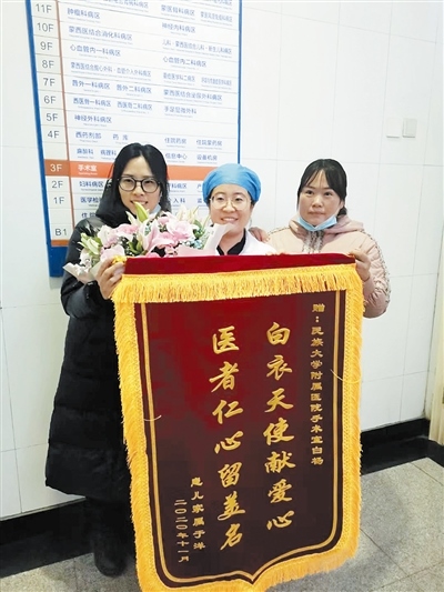 11月27日,當(dāng)孩子已經(jīng)好轉(zhuǎn)出院,王欣影沒有忘記那一夜遇到的好心人,她再一次撥通白楊的電話,此時,她才得知白楊就是附屬醫(yī)院手術(shù)室的一名護(hù)士。她將一面寫有“白衣天使獻(xiàn)愛心醫(yī)者仁心留美名”的錦旗送到了白楊的手中,她說:女兒又多了一位媽媽。白楊也向記者講起了那晚的經(jīng)歷,她說:“其實,那晚我是去接我丈夫的,由于暴雪,丈夫被困在了米家科技園附近,我開車去接他,在回來的路上,看到有車輛遇險,心想,這樣惡劣的天氣,遇到誰有困難就應(yīng)該幫一把,當(dāng)時,我們也沒有多想,我也是做母親的,看到夫妻倆那么焦急,我只想把孩子快點(diǎn)送到醫(yī)院,好在有驚無險,孩子平安無事?!焙髞恚浾哌€了解到,當(dāng)把孩子送到醫(yī)院后,白楊已渾身濕透,待孩子已經(jīng)搶救上,安頓好王欣影后,已經(jīng)是凌晨5點(diǎn),天也蒙蒙亮了,白楊沒有回家,一夜未眠的她,留在了工作崗位上。