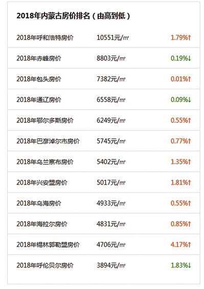 那么,我區(qū)12盟市的房價2018年走勢如何?新樓盤的均價都在什么價位區(qū)間?記者從安居客官網(wǎng)的統(tǒng)計中為大家梳理如下:
