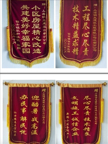 施工過(guò)程中,當(dāng)?shù)厣鐓^(qū)及居民給施工方送去的部分錦旗。受訪者供圖