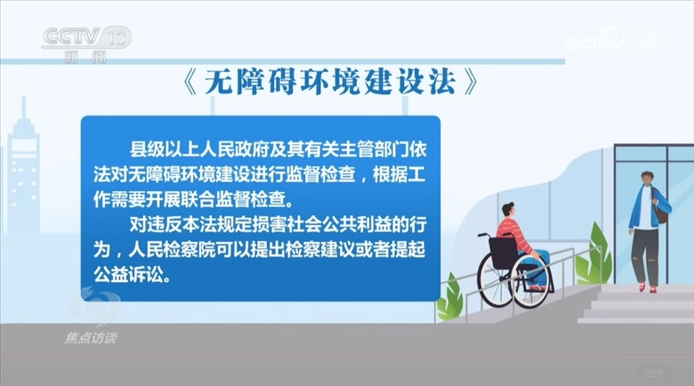 有了設(shè)施建設(shè)標(biāo)準(zhǔn)、劃分了管理維護(hù)責(zé)任,這還不夠,沒有監(jiān)督,無障礙環(huán)境建設(shè)工作很難持久。在《無障礙環(huán)境建設(shè)法》中,還對(duì)“如何保障‘急難愁盼’問題得到解決”進(jìn)行了規(guī)定。比如縣級(jí)以上人民政府及其有關(guān)主管部門依法對(duì)無障礙環(huán)境建設(shè)進(jìn)行監(jiān)督檢查,根據(jù)工作需要開展聯(lián)合監(jiān)督檢查。對(duì)違反《無障礙環(huán)境建設(shè)法》規(guī)定損害社會(huì)公共利益的行為,人民檢察院可以提出檢察建議或者提起公益訴訟。