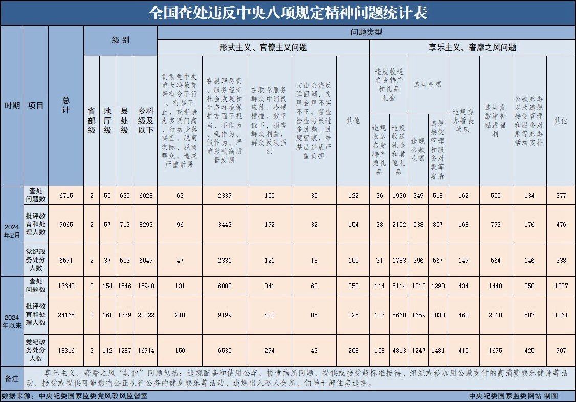 央視網(wǎng)消息:3月26日,中央紀委國家監(jiān)委公布了2024年2月全國查處違反中央八項規(guī)定精神問題匯總情況。當月,全國共查處違反中央八項規(guī)定精神問題6715起,批評教育和處理9065人,其中黨紀政務(wù)處分6591人,這是連續(xù)第126個月公布月報數(shù)據(jù)。