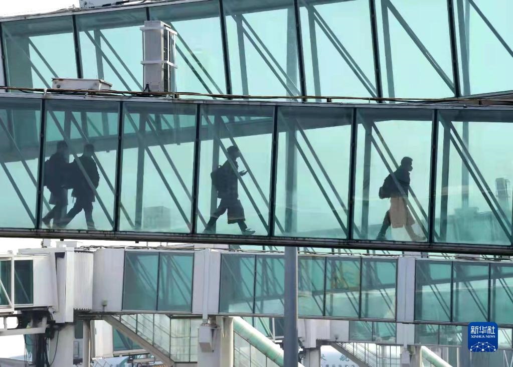 3月14日,中國(guó)公民乘坐臨時(shí)航班抵達(dá)大連周水子國(guó)際機(jī)場(chǎng)。新華社發(fā)(大連機(jī)場(chǎng)提供)