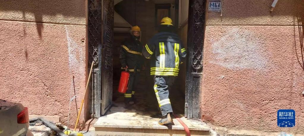 這是8月14日在埃及吉薩拍攝的救援現(xiàn)場。新華社發(fā)