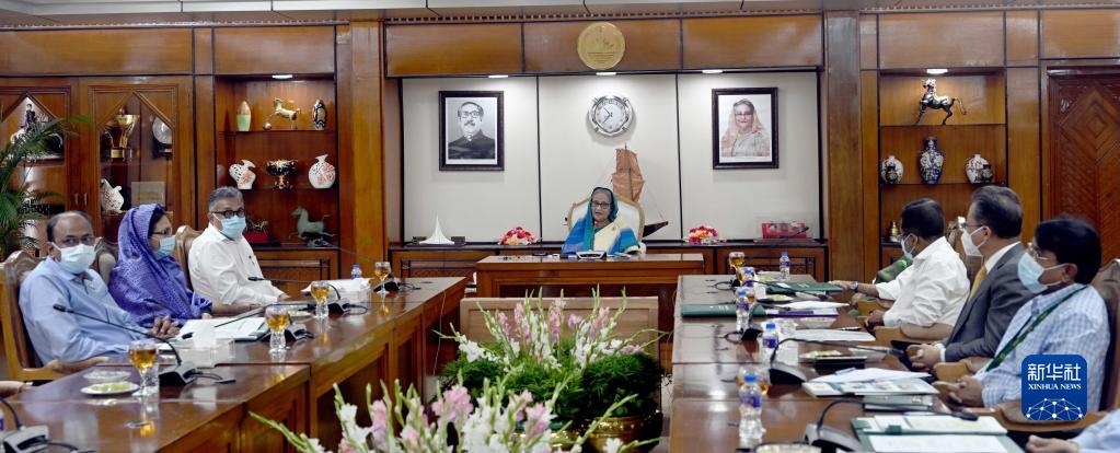 9月4日,在孟加拉國(guó)達(dá)卡,孟加拉國(guó)總理哈西娜(中)出席孟中友誼八橋啟用儀式。新華社發(fā)