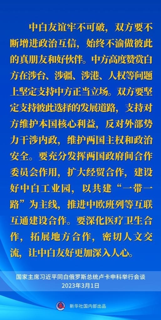 3月1日,國家主席習(xí)近平在人民大會堂同來華進(jìn)行國事訪問的白俄羅斯總統(tǒng)盧卡申科舉行會談。一起來看習(xí)近平主席的談話要點。