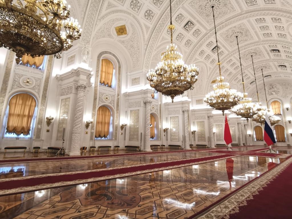 普京在喬治大廳為習近平舉行隆重歡迎儀式。