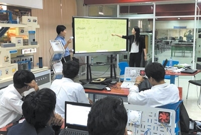 2016年3月,由天津渤海職業(yè)技術學院與泰國大城技術學院共同建設的全球首家魯班工坊正式揭牌,標志著中國職業(yè)教育走出國門,與其他國家分享優(yōu)質職業(yè)教育資源。泰國魯班工坊采用“學歷教育+職業(yè)培訓”方式,匯聚先進教學裝備,集中優(yōu)質雙語教學資源,設立了自動化生產線教學區(qū)、仿生機器人學習體驗區(qū)等15個教學實踐區(qū),讓學生們能夠更加直觀地在各種機器上操作演練。
