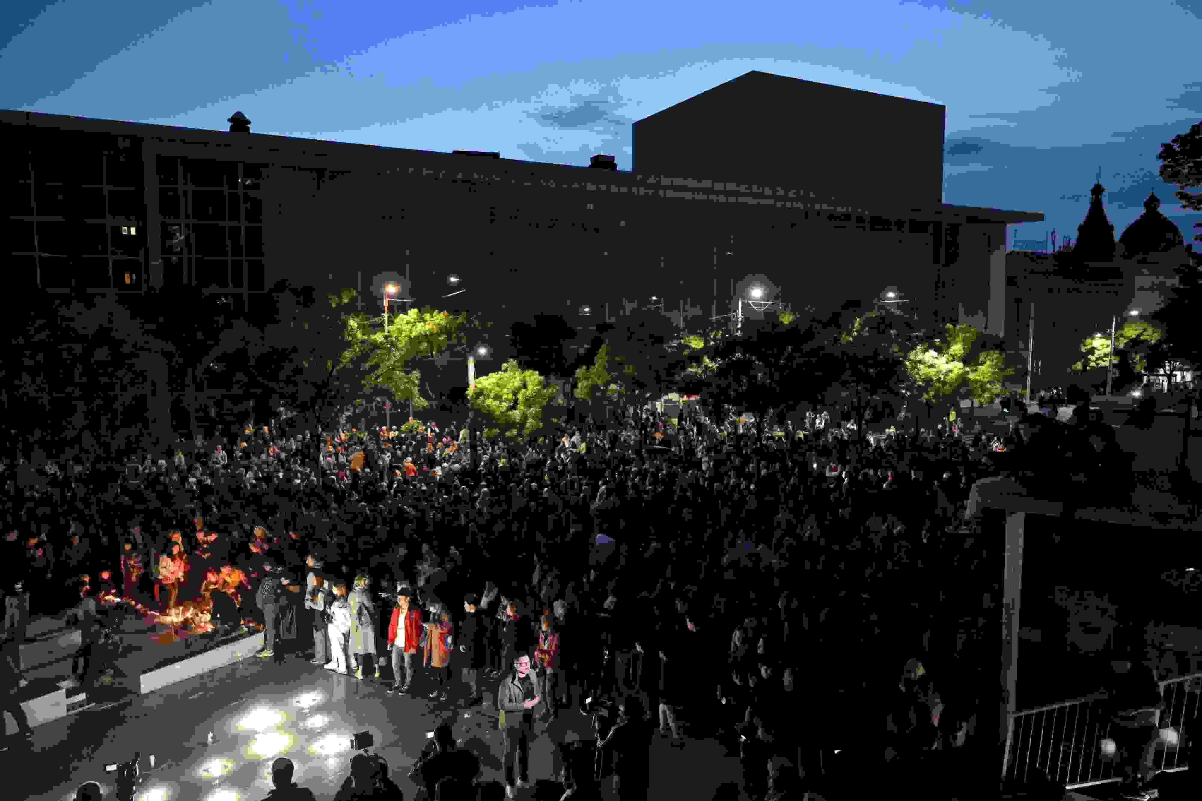 當?shù)貢r間2023年5月3日,塞爾維亞貝爾格萊德,人們在學校門前悼念遇難者。