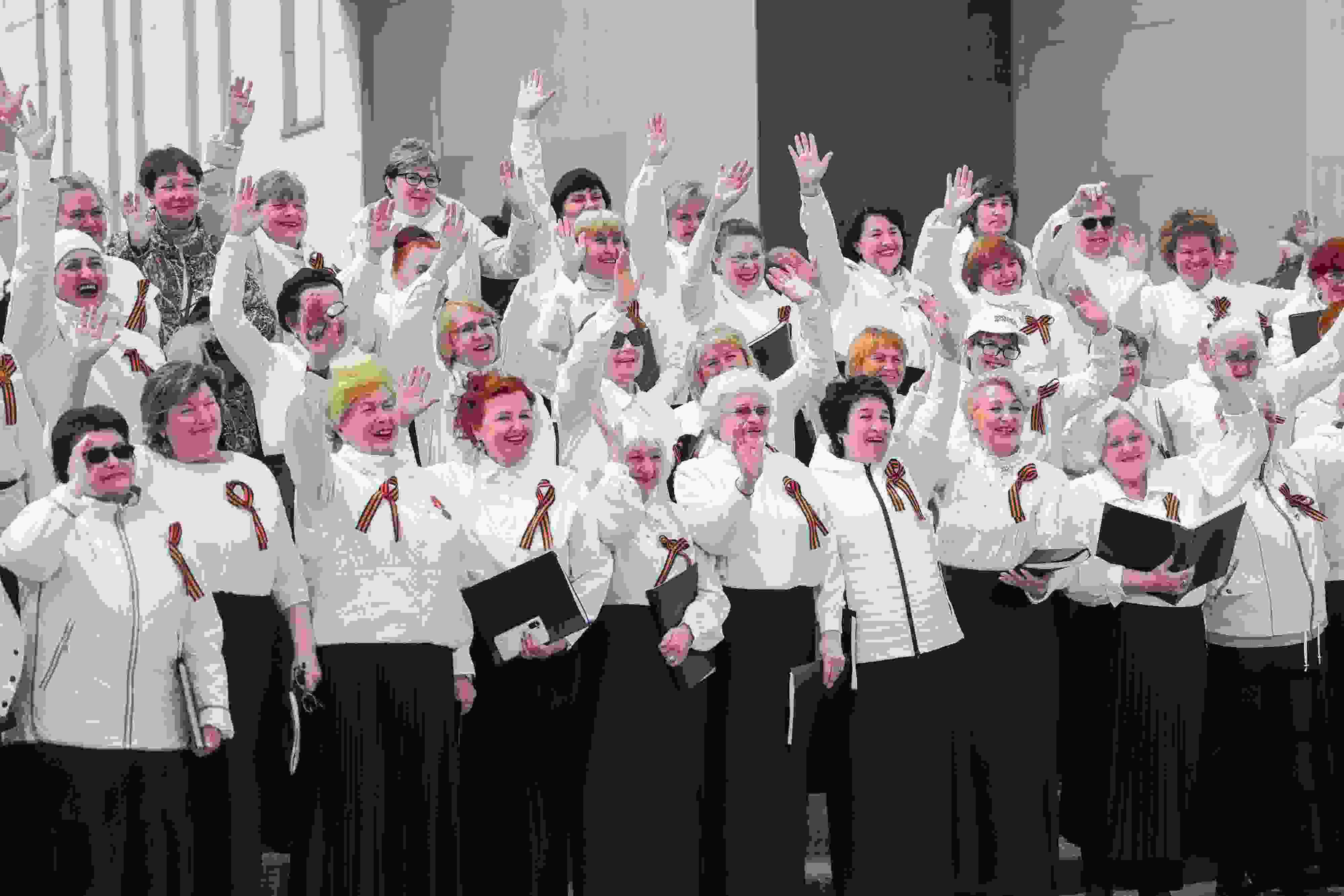 當(dāng)?shù)貢r(shí)間2023年5月8日,俄羅斯莫斯科,合唱團(tuán)在紀(jì)念二戰(zhàn)勝利78周年的音樂會(huì)上表演。 視覺中國