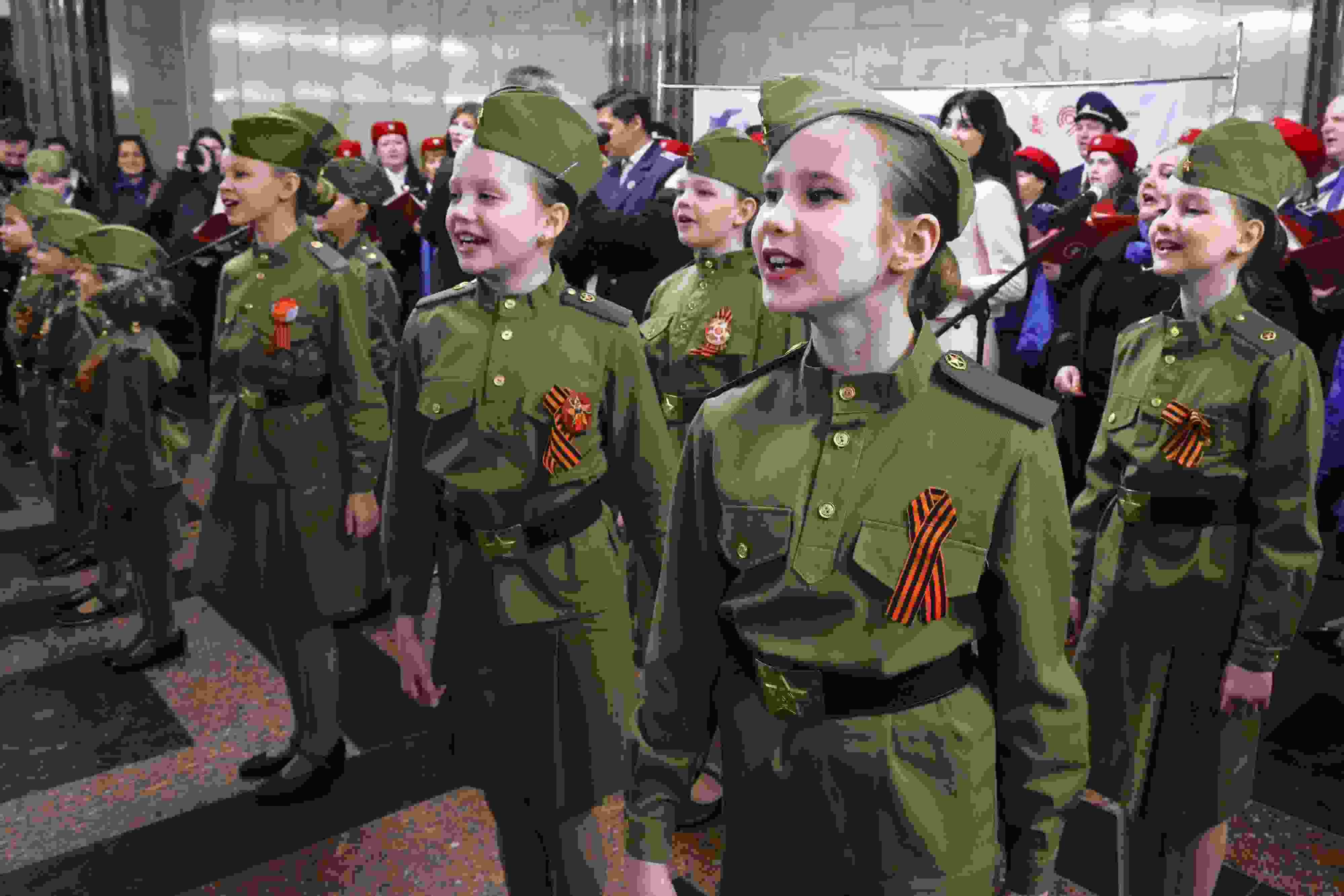 當(dāng)?shù)貢r(shí)間2023年5月8日,俄羅斯莫斯科,兒童在紀(jì)念二戰(zhàn)勝利78周年的音樂會(huì)上表演。 視覺中國