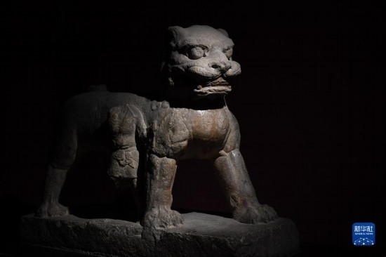 5月9日,游客在西安碑林博物館內(nèi)參觀(guān)唐代石獅。古代中國(guó)的獅子多通過(guò)絲綢之路由外國(guó)進(jìn)貢而來(lái)。