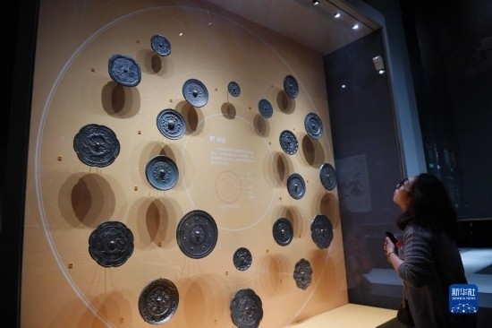 5月8日,游客在西安博物院參觀(guān)展出的銅鏡。