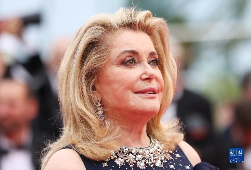 5月16日,在法國戛納舉行的第76屆戛納國際電影節(jié)上,演員凱瑟琳·德納芙亮相開幕式紅毯。
