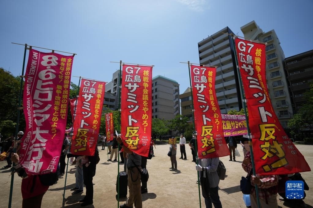 當天,大批民眾再次在廣島舉行大規(guī)模集會游行,抗議七國集團(G7)峰會舉行。