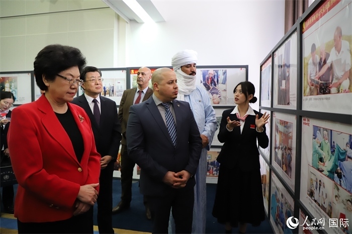 與會嘉賓參觀“60年中國援阿醫(yī)療隊圖片展”。人民網(wǎng)記者 王傳寶攝