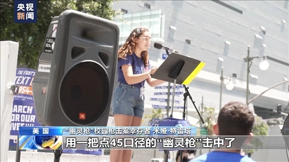 “幽靈槍”校園槍擊案幸存者 米婭·特雷塔:當(dāng)時我們正在談笑,突然聽見“砰”的一聲槍響,當(dāng)?shù)诙晿屄曧懫饡r我已經(jīng)跌倒在地上。我爬起來,跑進教室里,同學(xué)和老師急忙為我止血,我被一名不認識的同校學(xué)生,同時也是一個未成年人,用一把點45口徑的“幽靈槍”擊中了。