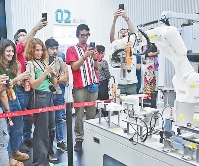 拉美代表參觀襄陽數(shù)字工業(yè)創(chuàng)新中心時(shí),被智能化的工業(yè)設(shè)備所吸引。朱熙勇攝