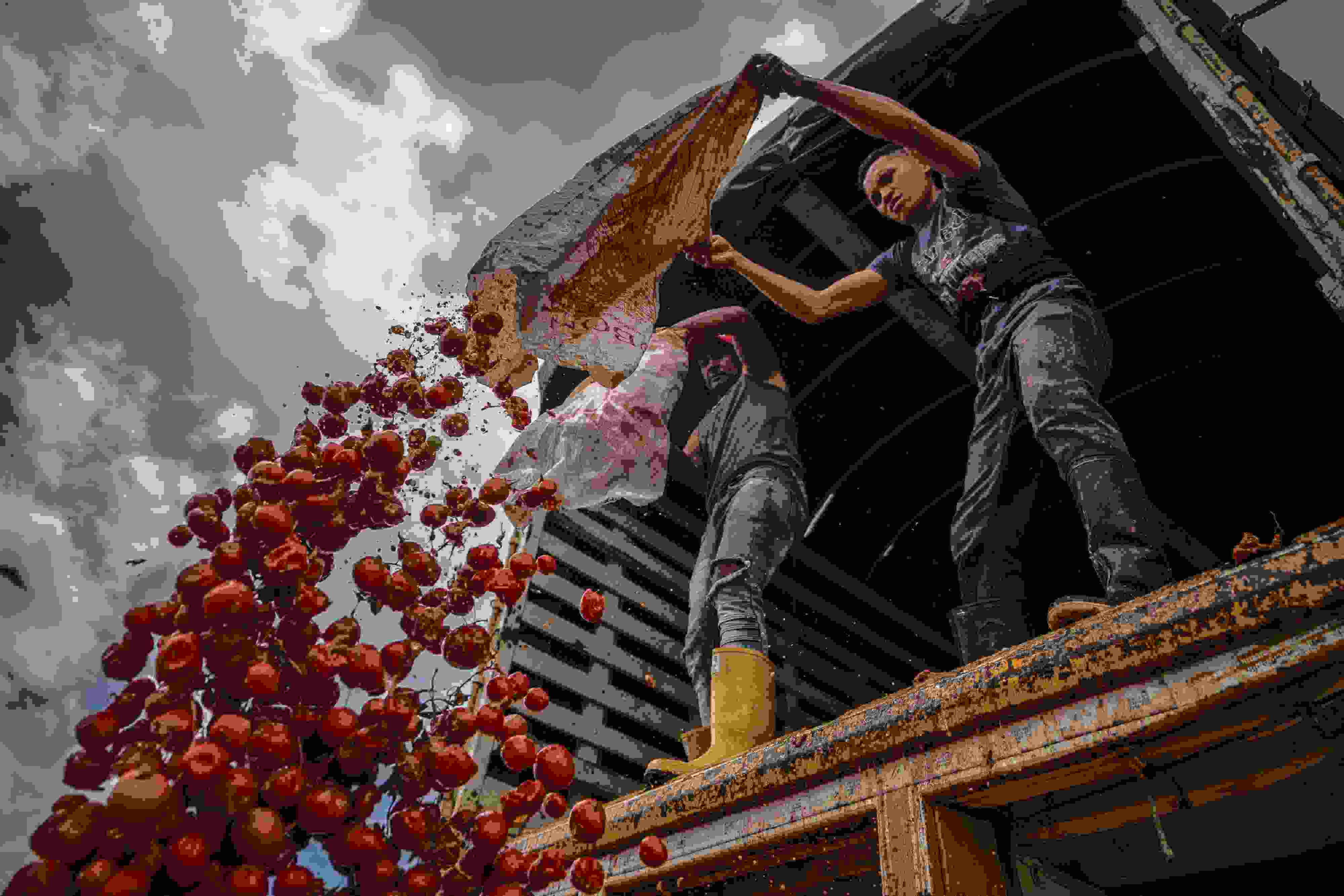 哥倫比亞民眾參加“西紅柿大戰(zhàn)”