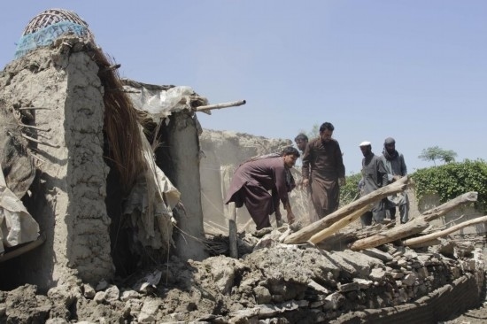 5月6日,人們在阿富汗楠格哈爾省清理遭強降雨和洪水損毀的房屋廢墟。新華社發(fā)(艾馬爾·查希爾攝)