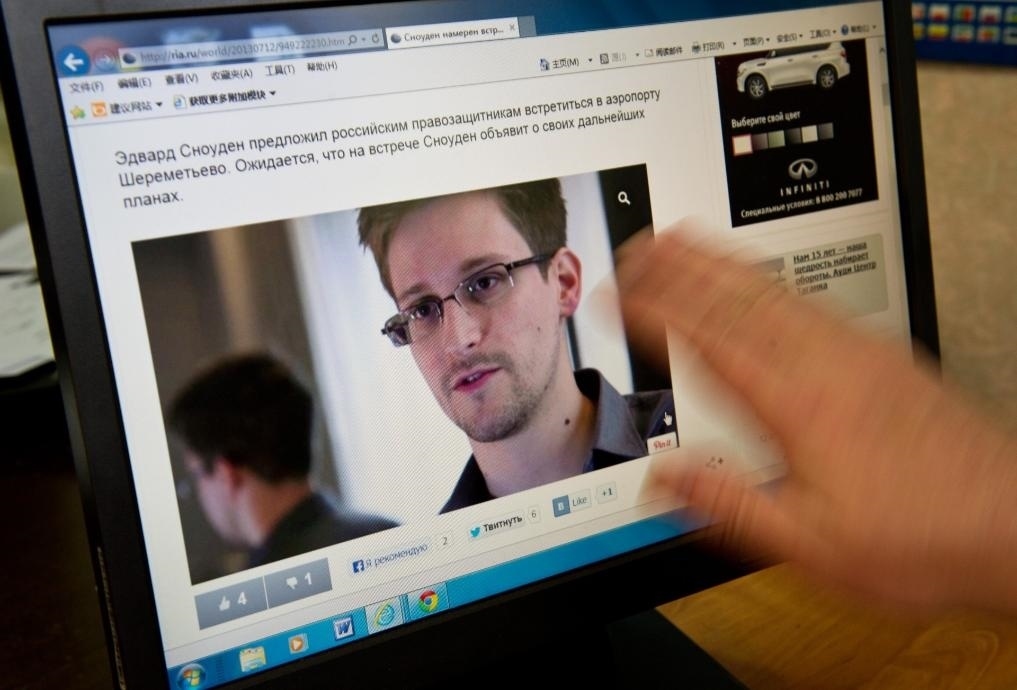 2013年7月12日,新聞工作者在俄羅斯首都莫斯科打開網(wǎng)頁(yè)瀏覽斯諾登的訊息。新華社記者姜克紅攝