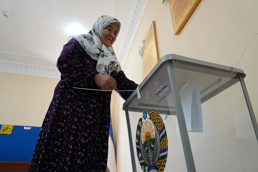 7月9日,選民在烏茲別克斯坦塔什干的一處投票站內投票。新華社發(fā)(扎法爾攝)