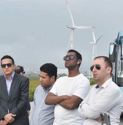 阿拉伯國(guó)家外交官在上海電氣集團(tuán)臨港風(fēng)場(chǎng)參觀。方盈眾攝
