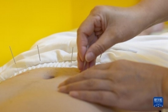 7月20日,在匈牙利布達佩斯匈牙利岐黃中醫(yī)藥中心,甘肅外派專家張海芳在為患者做針灸治療。新華社發(fā)(弗爾季·奧蒂洛攝)