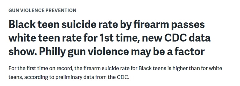 費(fèi)城公共廣播電臺(tái)WHYY網(wǎng)站13日?qǐng)?bào)道稱(chēng),專(zhuān)家指出,美國(guó)費(fèi)城和其他主要城市的槍擊事件頻發(fā)、槍支獲取難度低、社交媒體加劇絕望情緒等因素可能是導(dǎo)致黑人青少年自殺率上升的原因。