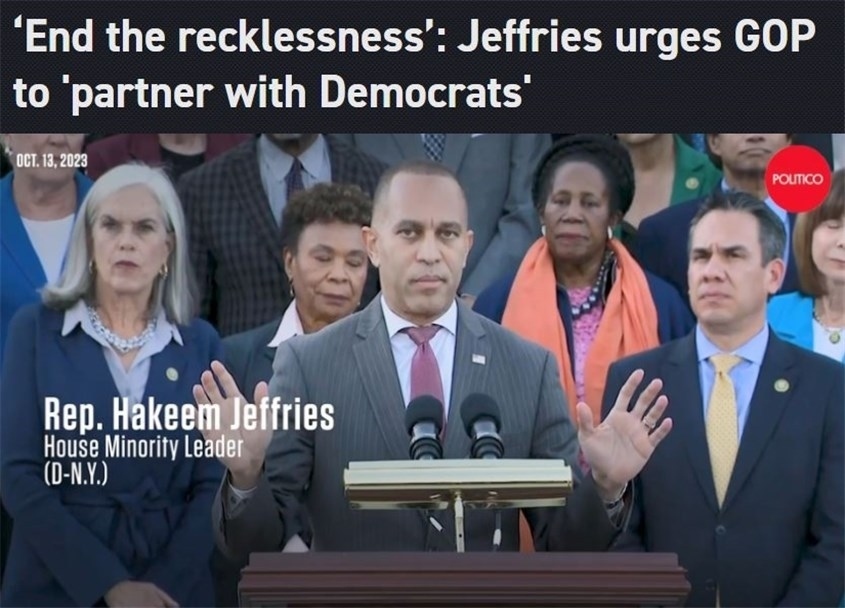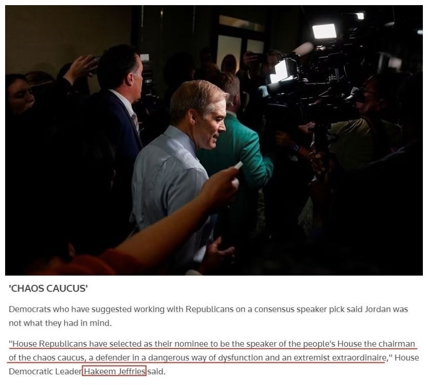 作為民主黨議長候選人的眾議院少數(shù)黨領(lǐng)袖哈基姆·杰弗里斯13日警告,在眾議院共和黨人的“內(nèi)戰(zhàn)”仍在繼續(xù)的情況下,作為“極端主義者”的喬丹獲得提名只會讓國會變得“更加極端和混亂”。