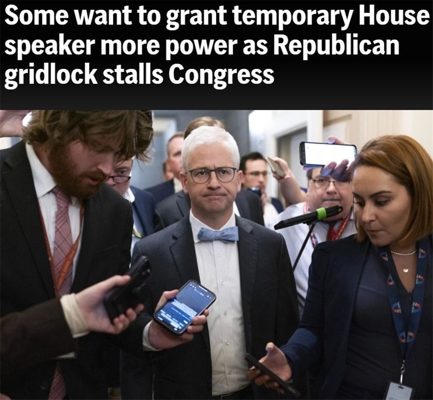 在此之前,為確保眾議院“正常履職”,有人提出當務(wù)之急是擴大麥克亨利的職權(quán)。不過,一些共和黨議員對此并不感興趣,認為在預(yù)算和其他重大政策方面,為臨時議長擴權(quán)并不是有效的做法。