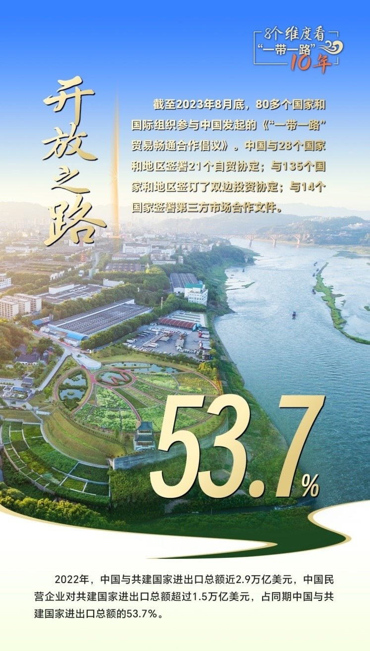 2023年是共建“一帶一路”倡議提出十周年,也是全面貫徹落實黨的二十大精神的開局之年。黨的二十大報告提出:“推動共建‘一帶一路’高質(zhì)量發(fā)展?!睆男缕瘘c再出發(fā),高質(zhì)量共建“一帶一路”,在和平之路、繁榮之路、開放之路、創(chuàng)新之路、文明之路、健康之路、綠色之路和數(shù)字之路上繼續(xù)扎實推進(jìn),攜手世界合作共贏、共同發(fā)展,擘畫攜手共建人類命運共同體新藍(lán)圖。