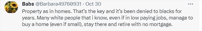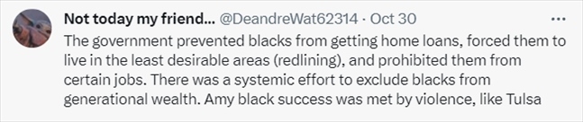 還有網友表示,美國政府在加劇美國財富不平等方面“功不可沒”。在美國政策高壓之下,非裔甚至不配擁有住房。