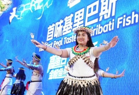 11月8日,來自基里巴斯的參展人員在基里巴斯水產(chǎn)品推介活動(dòng)上表演。